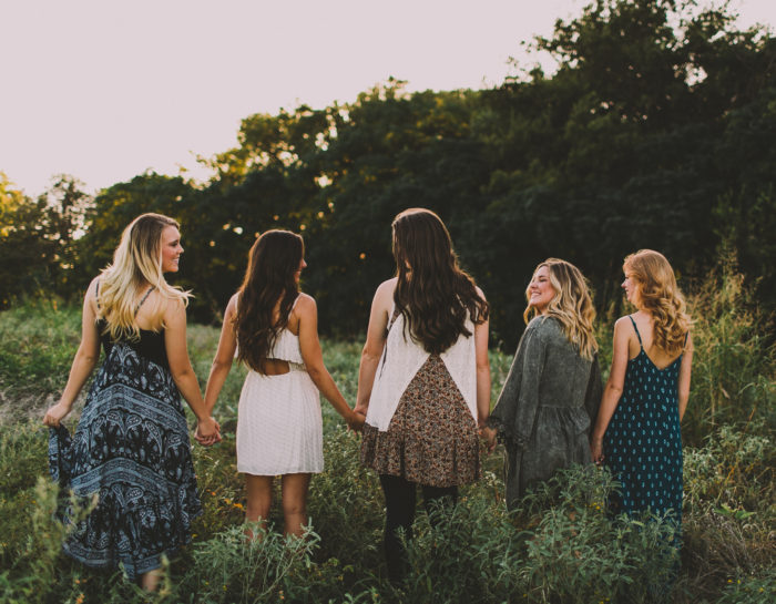 2. multiple women, coordinated outfits